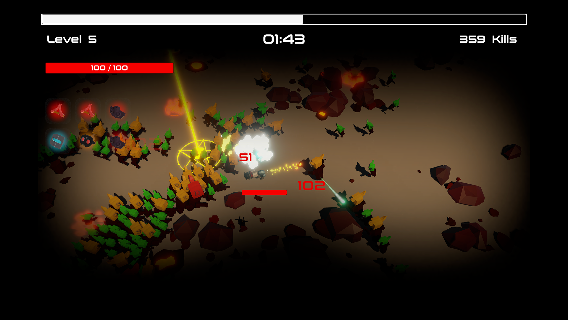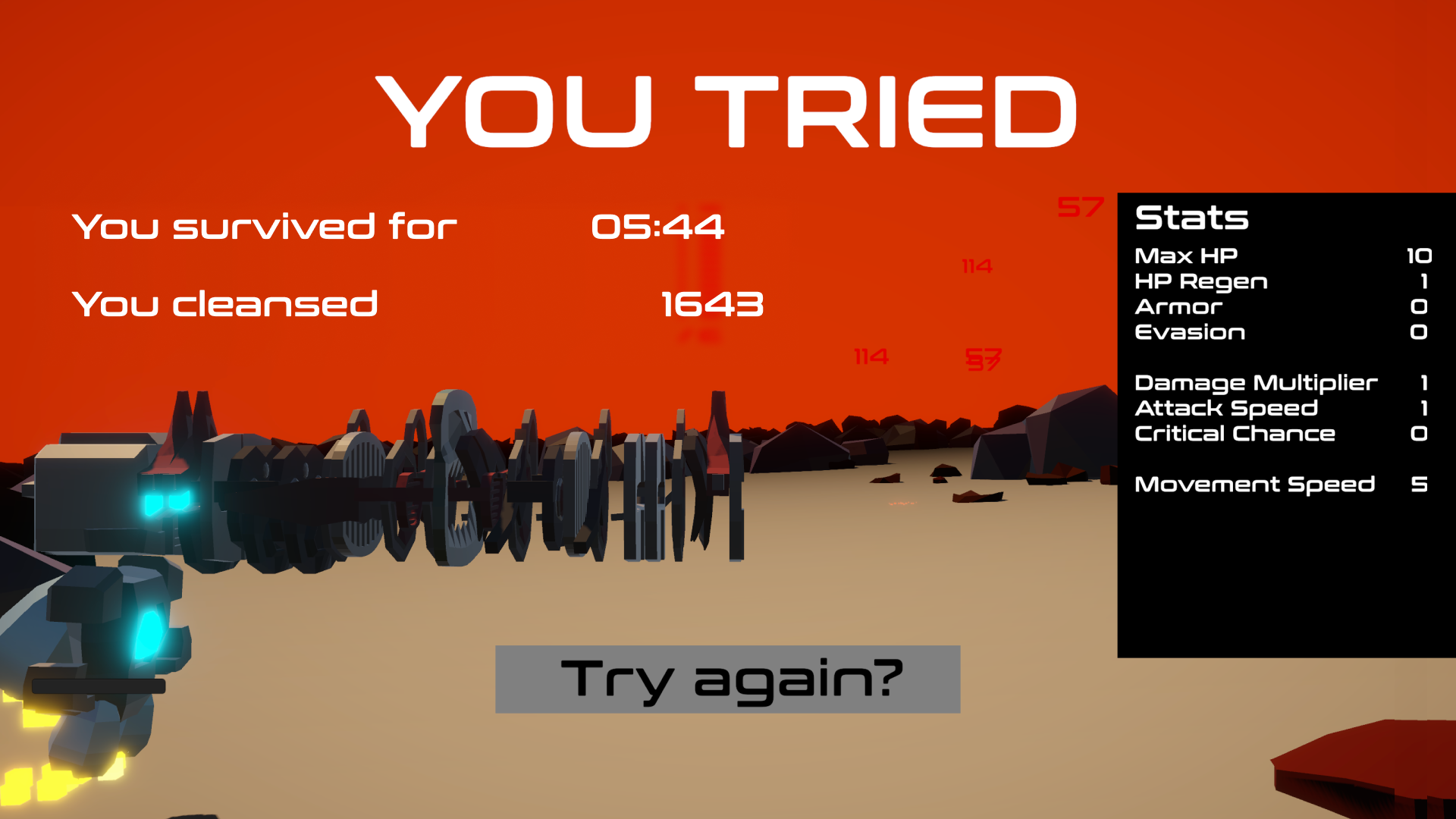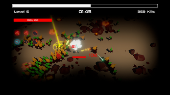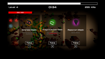A reverse bullet hell where you play as a robot sent to a filthy planet to wipe out demons. Kill enemies to collect masks that give you powerful weapons, but block your vision. Survive as long as you can and kill as many demons as possible before they overwhelm you.